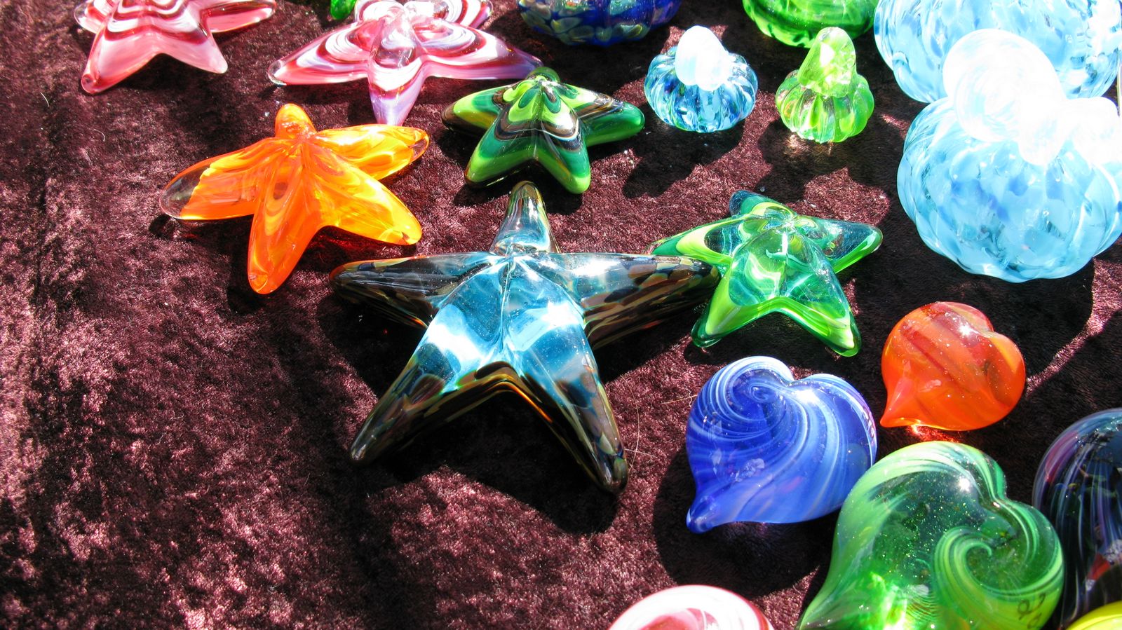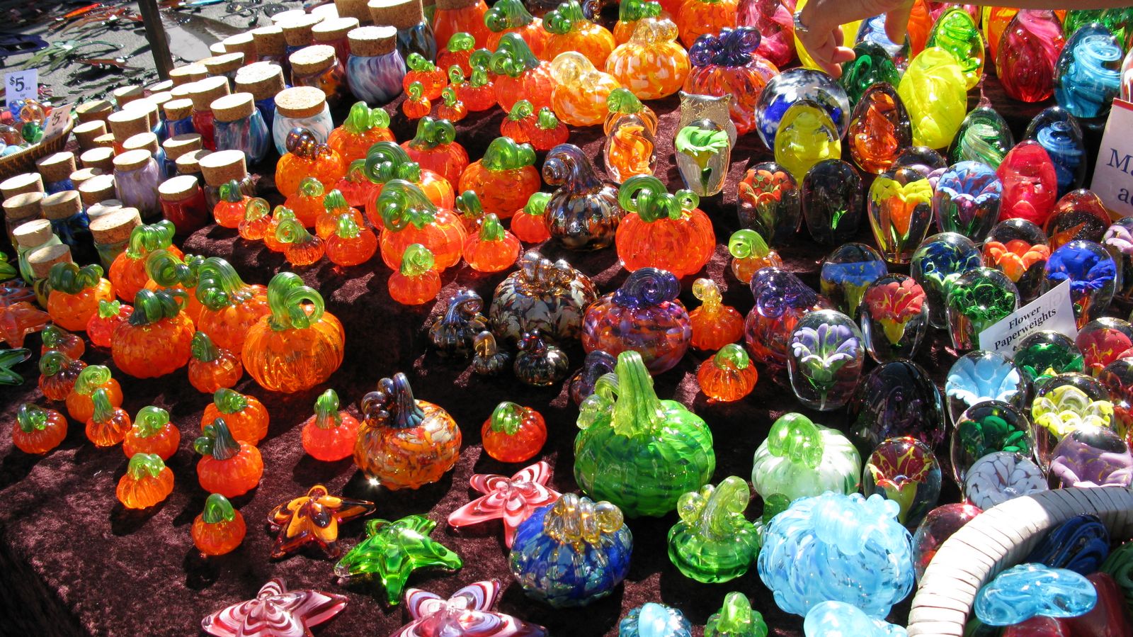 One of my favorite vendors was selling paperweights and other glass art. I loved these glass pumpkins and the glass hearts. We meant to stop by to buy some on our way back, but forgot once we'd headed out of the Market into downtown.