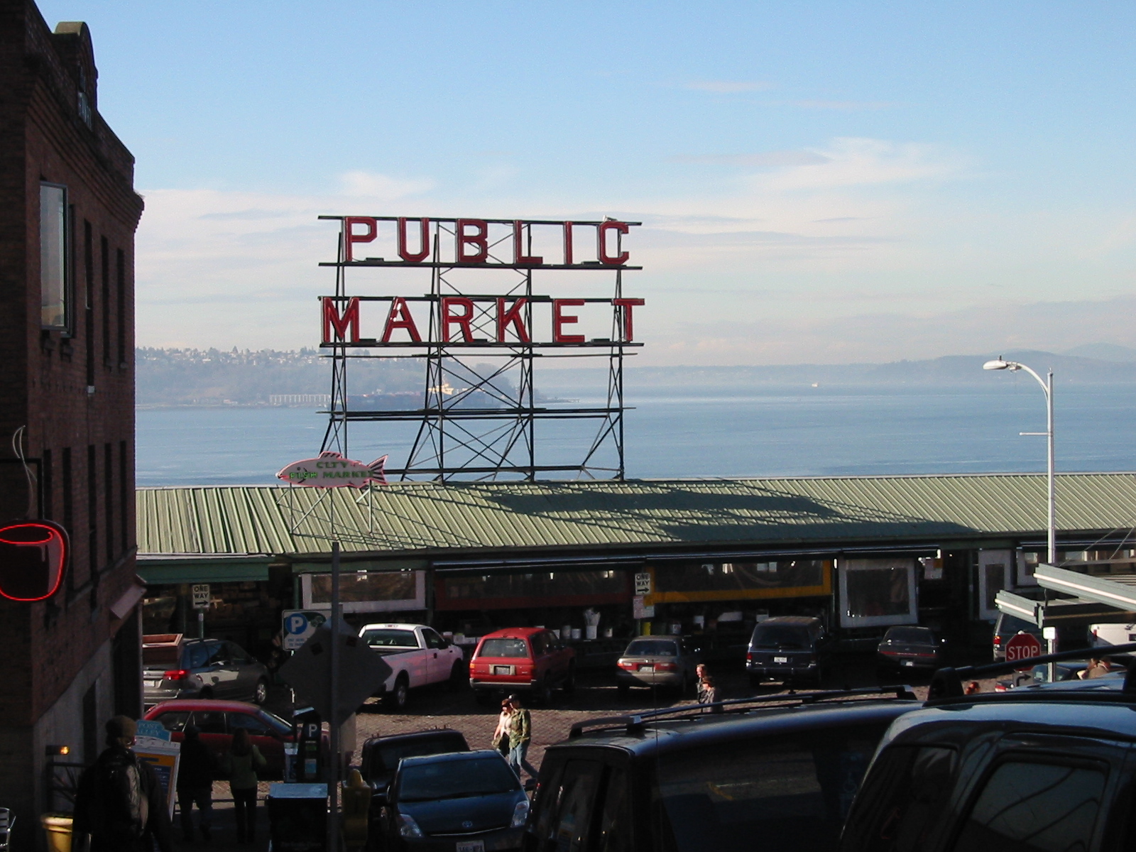 I'm hoping for good weather tomorrow and would really like to go back and buy a few more things. There was a hard cider vendor, a few amazing looking cheese vendors, and, of course, THAT pizza. I won't count on it, though. That's Seattle weather for you. You have to walk away knowing that tomorrow might bring the return of the gray skies and the stooped necks of pedestrians trying to keep their faces dry. If we get a second day of weather like today, well then, we hit the jackpot!Today was a perfect day for bonus weather. There was lots of activity happening in the city. At the Seattle Center alone, there was the Italian Festival, a comic book festival and the Decibel Festival (aka a daytime rave so loud it sounded like it was in our living room). The Pike Place Market was also hosting it's first annual Artisan Food Festival, benefitting the Pike Place Market Foundation. The Market Foundation is the organization that supports elderly and low-income services for residents of downtown Seattle. This was our destination of choice on this sunny day.