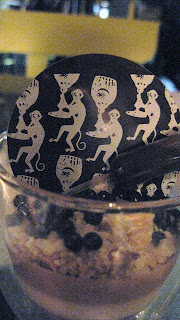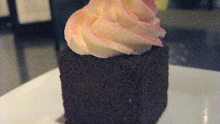 I only had a bite of each (and that's how you know I was REALLY under the weather), but the mousse was FAR better than the cupcake. It had an amazing crunch to it and even had a tiny vile of chocolate sauce that you squeeze on yourself before eating. The red velvet cupcake, on the other hand, was a tad dry and bland. The cream cheese frosting was very good (creamy and not over-the-top sweet), though.