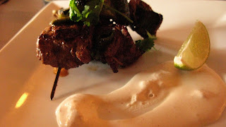 Steak brochettes with lime crema