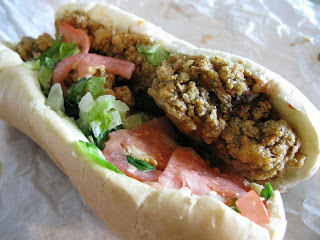Sadly, we waited too long to get there, so when we arrived at Where Ya At Matt they were out of shrimp... no shrimp and grits for me. I chose an oyster Po' Boy instead. They also had about 100 different types of Tabasco sauce (okay, maybe only five). I added a liberal amount of the garlic Tabasco and headed home. B also got one of his favorite rare treats - Coke in a glass bottle.