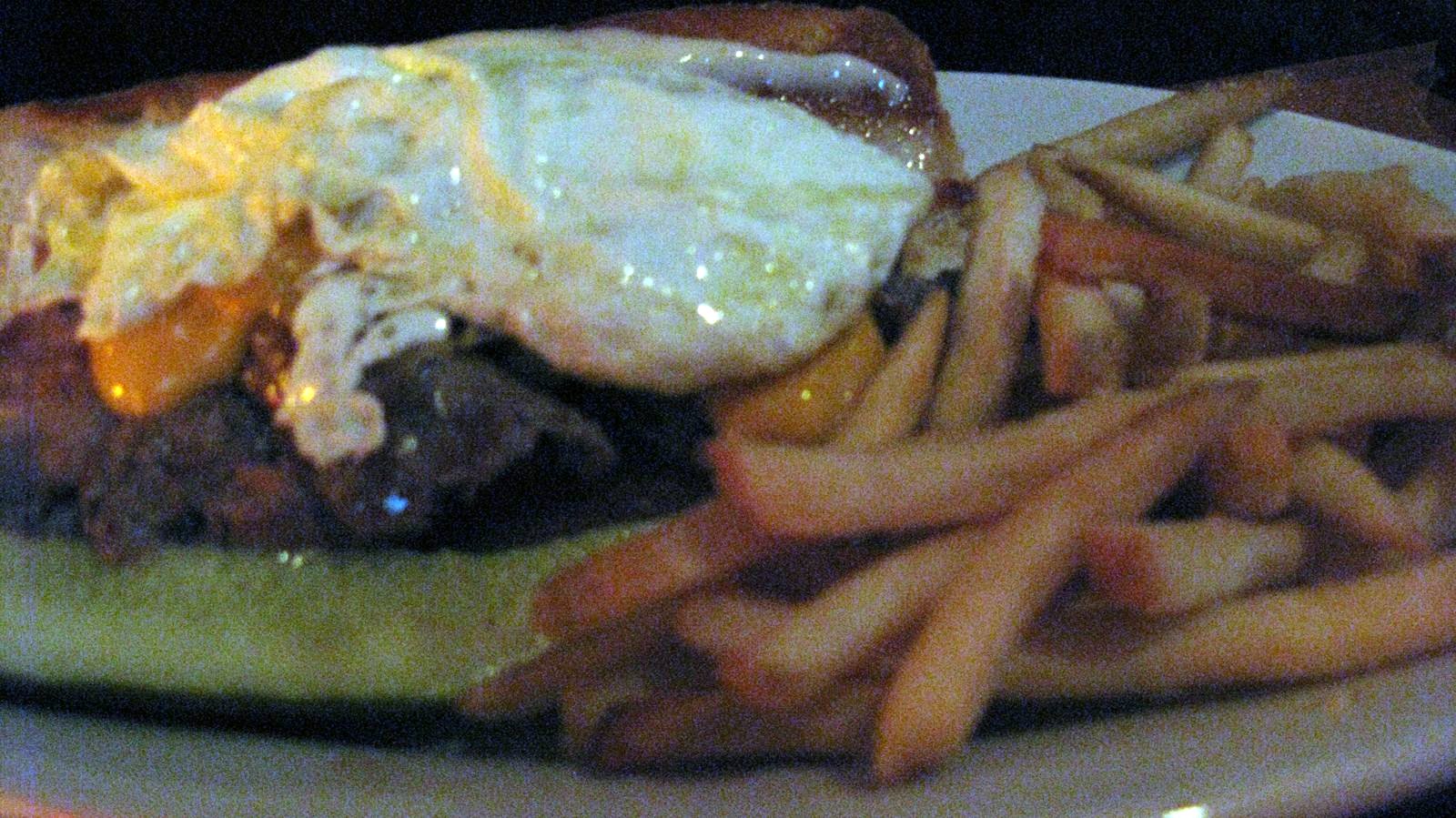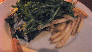 As for the food, B had Thee Ted Smith (a roast beef sandwich with cheese and two fried eggs on top) and I had the Steak Frites. B loves that sandwich (he had the same last time). My steak was good. The photos are pretty terrible. I think I was a little crabby and starving by then, so I just wanted to eat my food!