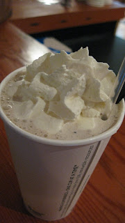 The first thing I noticed as we drove by looking for parking was just how bright the shop was on the dark street and how busy they obviously were inside. As we walked up to the door, it became increasingly clear we weren't the only ones needing an ice cream break before the new week really starts. On a summer night, the line at Molly Moon's wraps around the street corner. This is one reason I've never been there before. On this frigid Sunday night, the line was contained, but a seat was still hard to come by. I couldn't choose just one flavor and couldn't have all eight I wanted to try, so I settled on Salted Caramel and Mint Fudge. B's a milkshake guy, so he went with the Vivace Coffee Milkshake.
