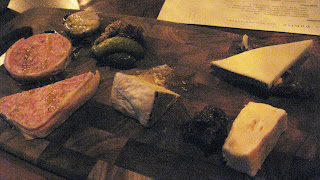 Our cheese and charcuterie plate arrived while I went in search of the restroom. When I returned, B lamented that I'd missed the explanation of everything on the board. Just as he was stumbling through his own rendition, the very kind expediter returned to the table and asked if I'd like him to go over it again. I love B, but I was very thankful to have a run down other than his.