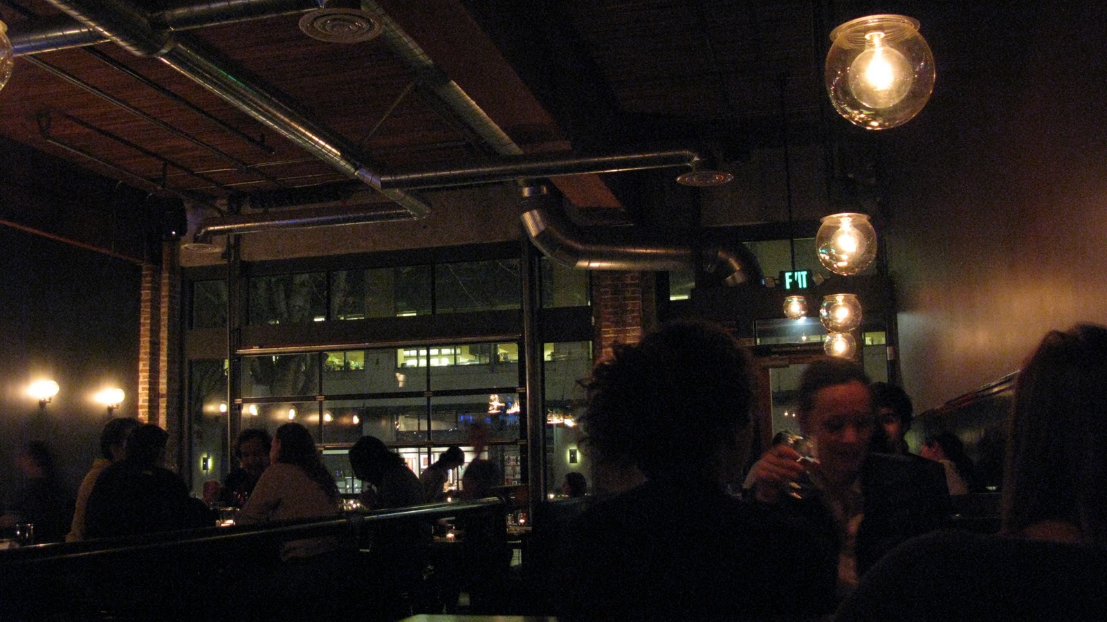 The space is much larger than it appears from the street and, though the bar was full (my guess is full of Amazon employees who work nearby), we didn't have any trouble getting a table for dinner. The interior is gorgeous. It's all very dark and tavern like (though quite spacious), with glowing balls of light over the tables and throughout the restaurant. It's very warm and lively, and though it looks like it has the potential to get very loud, it didn't. They also have a lot of real estate. While you're certainly aware of how many people are around you, they aren't close.